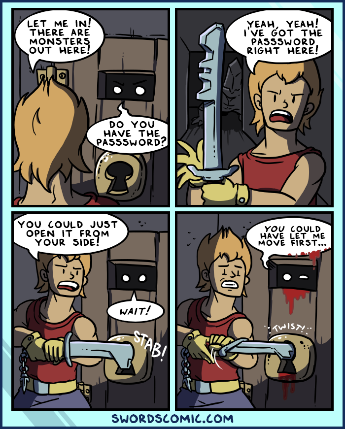 Adventurer: Yeah, yeah! I've got the passsword right here!