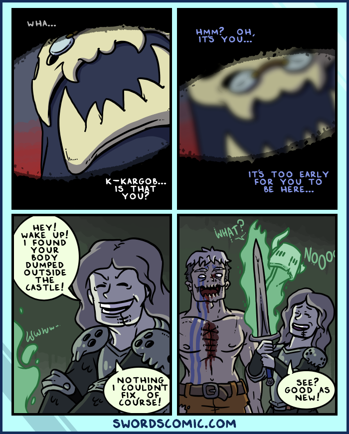 Kris: Hey! Wake up! I found your body dumped outside the castle!