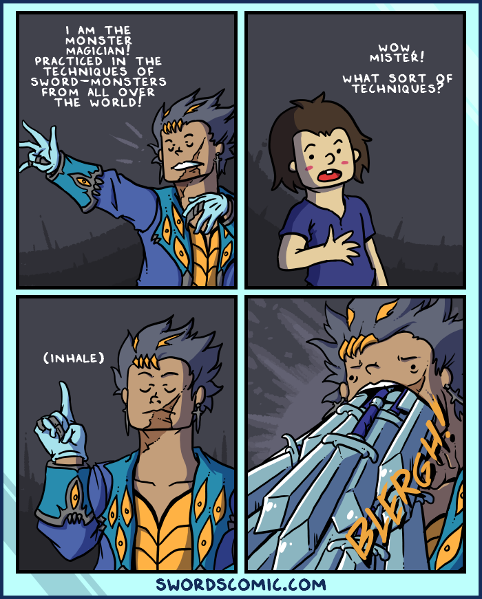 monster magician: I am the Monster Magician! Practiced in the techniques of sword-monsters from all over the world!