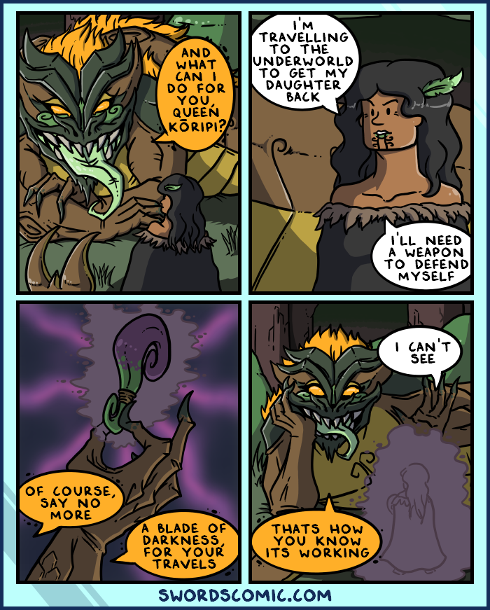 Queen Kо̄ripi: I'm travelling to the Underworld to get my daughter back. I'll need a weapon to defend myself