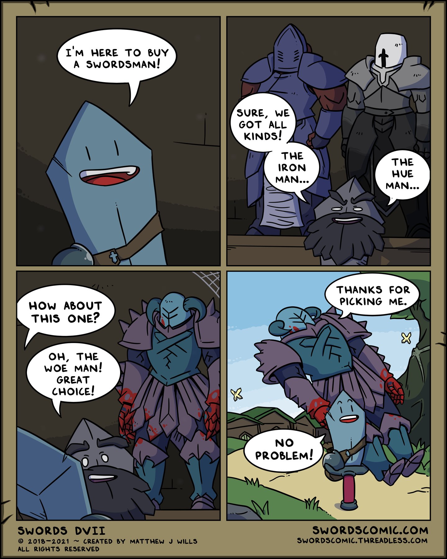 Sword Who Sells Swordsman By The Sea Shore: Sure, we got all kinds! The Iron Man... The Hue Man...