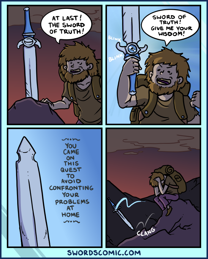 sword of truth: you came on this quest to avoid confronting your problems at home