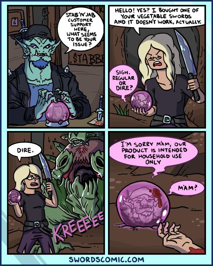 Customer Support Orc: Stab'n'jab customer support here, what seems to be your issue?