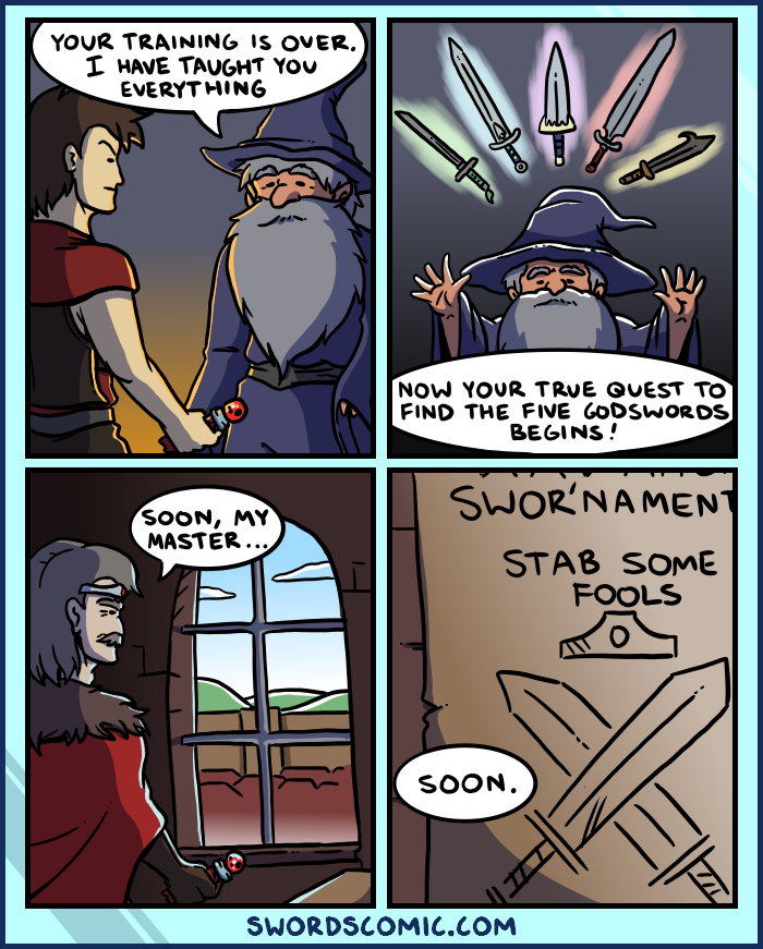 the sworcerer: Now your true quest to find the five godswords begins!